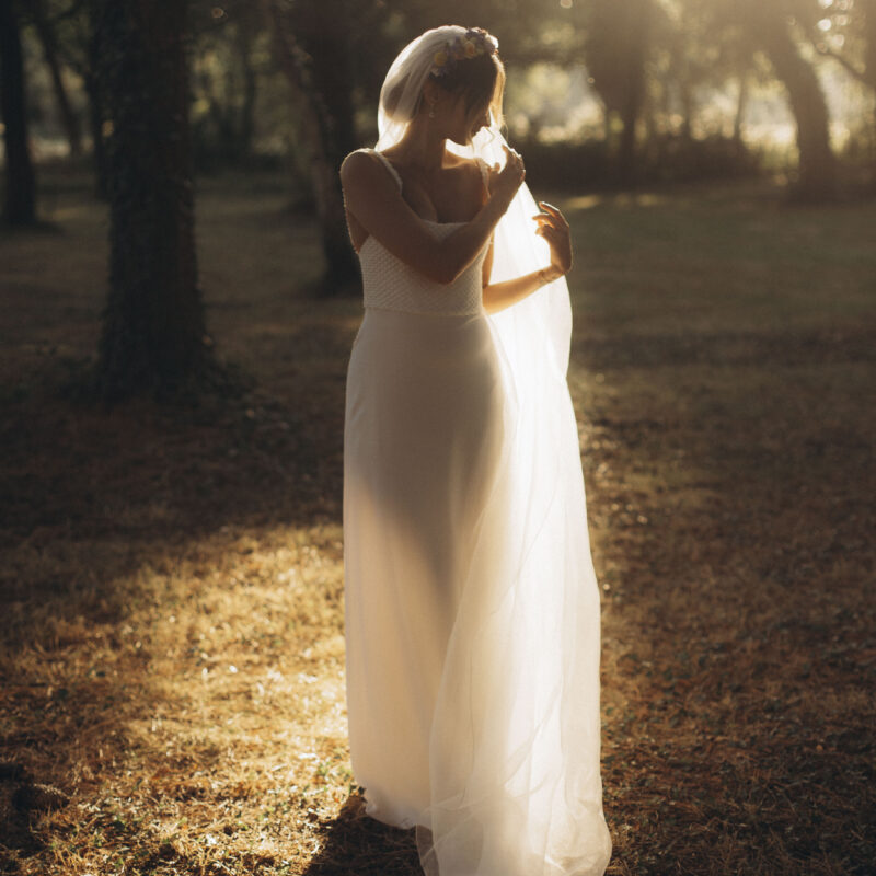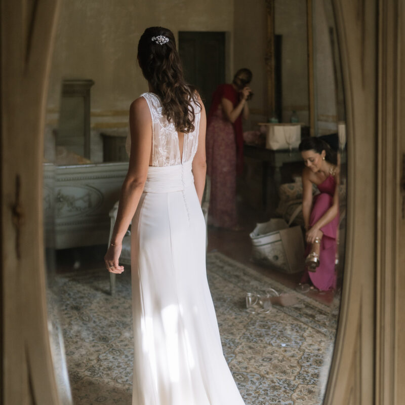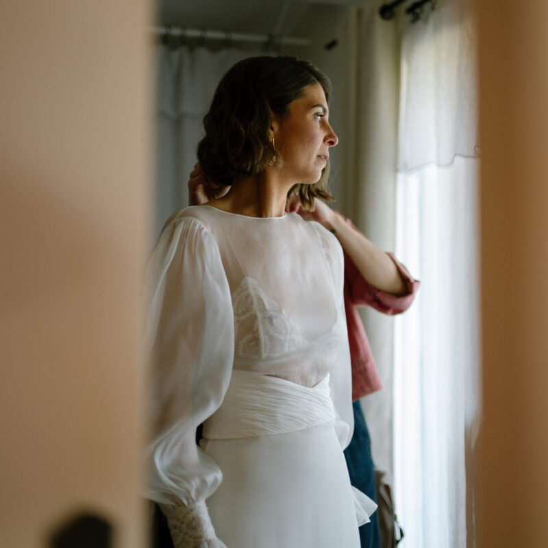 Chez BLANCHE, chaque pièce est fabriquée spécialement pour vous. Nos patrons sont travaillés selon les mesures prises lors des rendez-vous — et ce, pour chaque mariée. Afin que nos créations vous aillent à la perfection, nous pouvons ajuster la coupe, adapter la silhouette et amender certains détails.